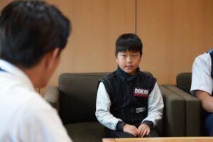 初めてのことなので控え室で緊張気味の長男の怜偉、町長室に呼ばれるとキッズカートのことやレースの展開の話まで色々と聞いて頂きました。お忙しい中お時間ありがとうございました!!