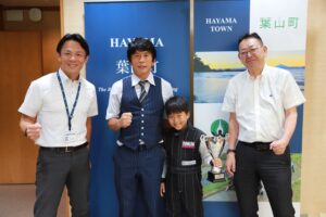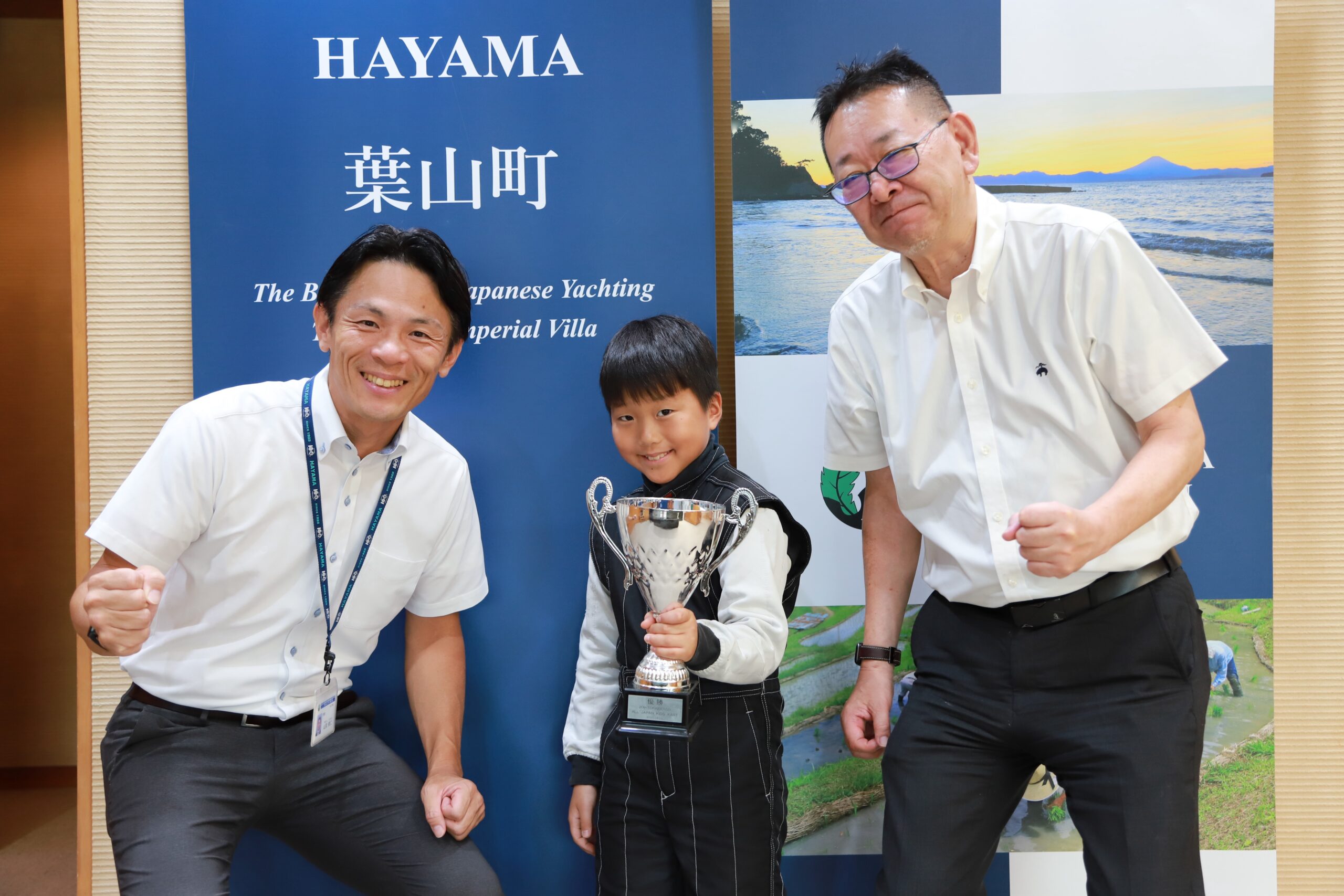 先日、8月に行われたキッズカート全国大会の優勝の報告に地元である葉山町の山梨町長を表敬訪問させていただきました。