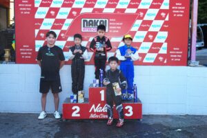 決勝レースでも同じく兄ポールの弟3番手スタート!弟琉偉はスタートで出遅れて4番手にドロップ。兄怜偉はトップをキープ。17番は抜きにこずピッタリと怜偉の後ろをマーク。そのまま最終ラップに。最終ラップはしっかりブロックして優勝っと思いきやここぞとばかりにブロックしていたラインをこじあけられて、インに並ばれて最終コーナーへ。そのまま抜かれてチェッカー。。。予選、決勝ともに最終コーナーでの決着に2位フィニッシュ。弟の琉偉もスタートで失った順位を取り戻せず4位でチェッカー!ほろ苦い第5戦となりました。ただシリーズランキング2位の78番も5位となったため少しだけ差は広がりましたが、最終戦のポイントは高いのと有効ポイントが6戦中5戦のポイントとなるため、シリーズ優勝は最終戦次第でまだまだわからないという状況です。全国大会とWEINC CUP中井のシーリーズダブル制覇目指して引き続き頑張ります!初優勝17番しんちゃんおめでとう!